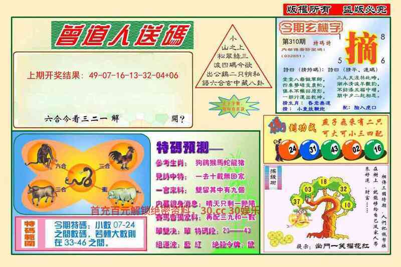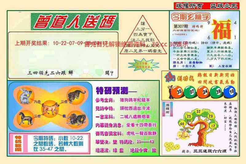 | 307期 | 兔虎羊马蛇狗龙 | 狗20准 |