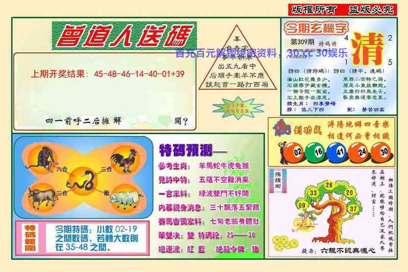 | 309期 | 龙羊猴狗猪蛇马 | 鼠06错 |